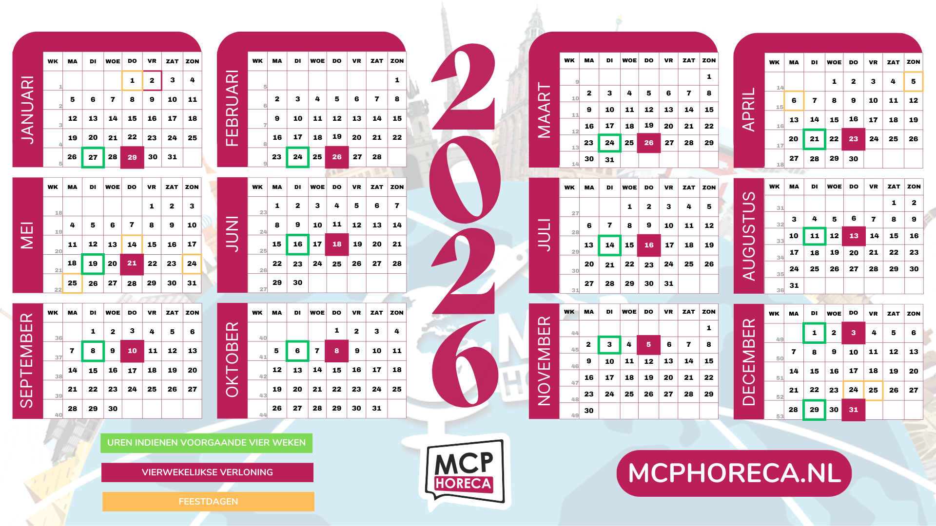 Elke maandag, voor 12:00 uur dien jij je uren via de portal in. Eén keer in de vier weken wordt je loon uitbetaald. Zie betaalschema.